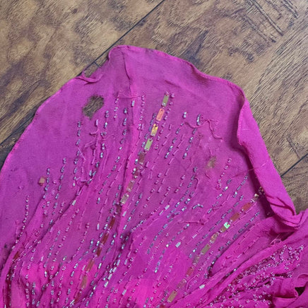 beaded embroidery, mermaid silhouette, sweetheart neckline, floor-length, hot pink, vintage formal, evening wear, embellished, glamorous style, romantic