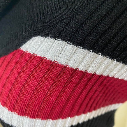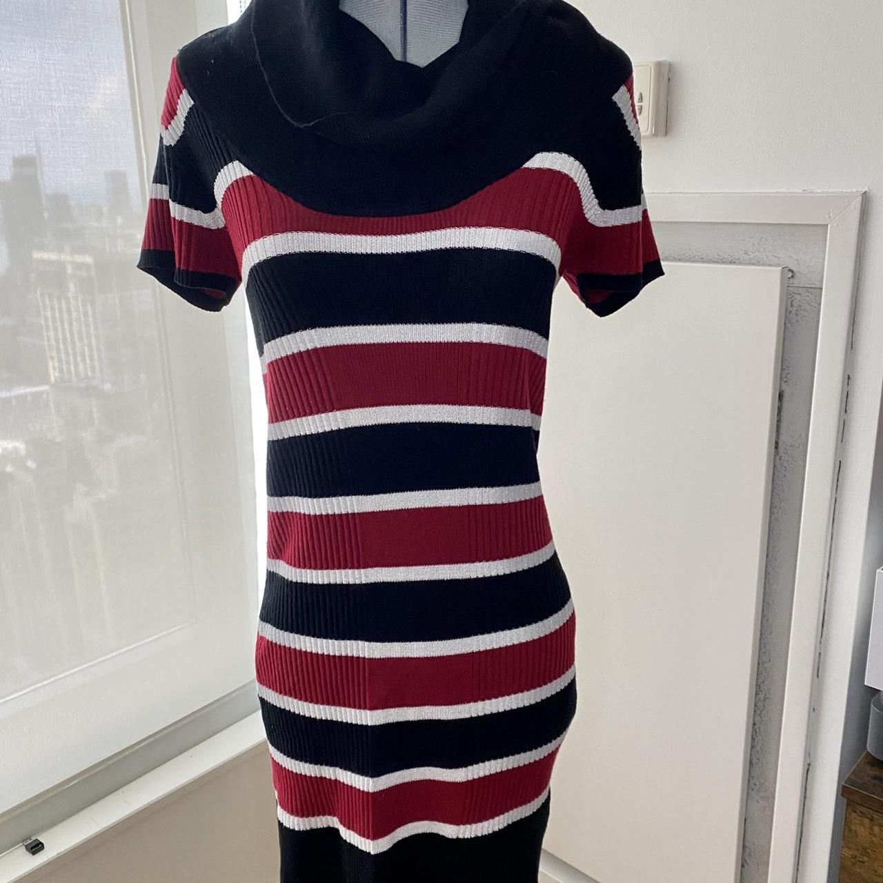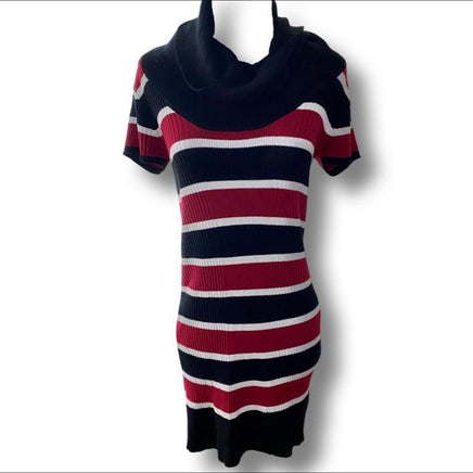 Glittery thread striped cowl neck sweater dress