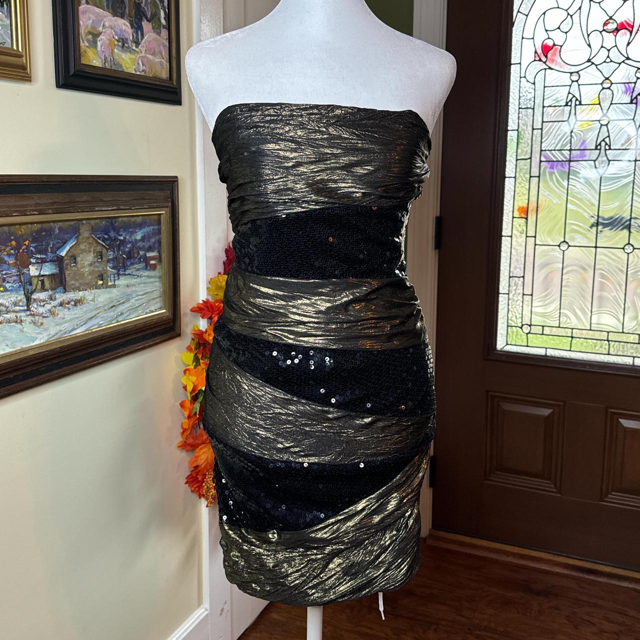 Gorgeous strapless gold and sequin ruched dress! So hot