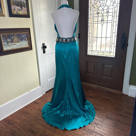 Stunning deep V neck bejeweled gown!